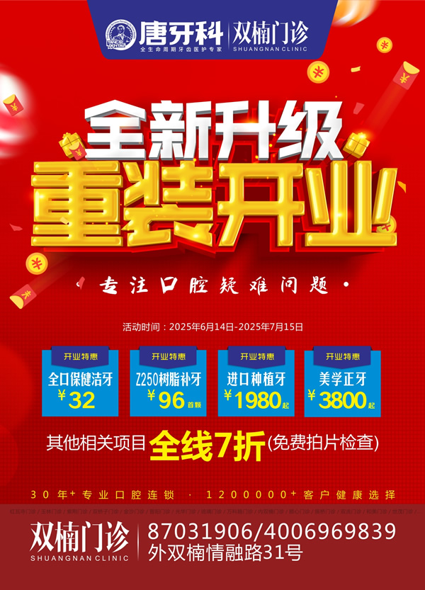 为了回馈广大新老顾客 ,对唐牙科双楠门诊的支持 ,此次也是拿出了十足的诚意 ,诸多优惠等大家前来解锁。